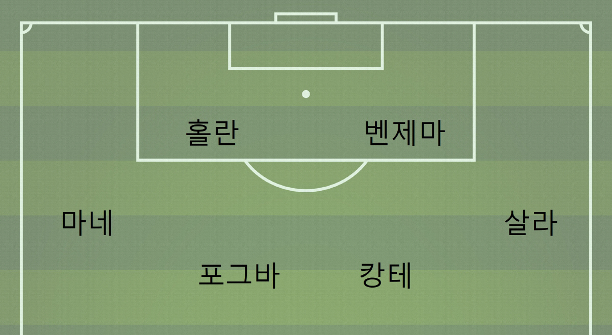 월드컵 직전 소속팀에서 당한 부상 여파로 월드컵 진출이 최종 불발된 마네와 마네의 세네갈에 밀려 월드컵 본선행이 좌절된 살라가 양 날개를 맡는다면, 마네-홀란-벤제마-살라로 이어지는 '판타스틱 4'가 완성된다. '월드컵 출전 베스트' 못지않은 라인업이다.