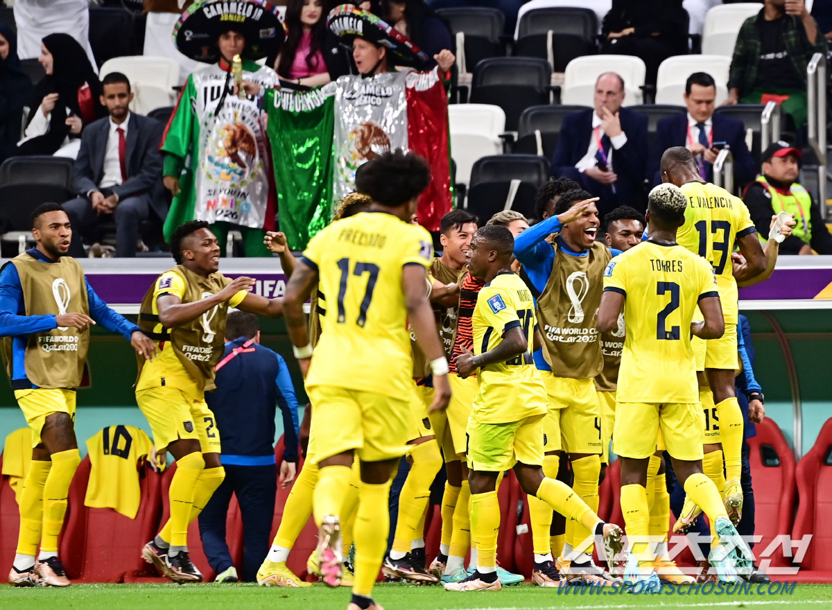 하지만 에콰도르는 곧바로 득점에 성공했다. 15분 절묘한 스루패스를 받은 발렌시아가 골키퍼를 제치는 과정에서 손에 걸려 넘어졌다. 주심은 페널티킥을 선언했다. 16분 발렌시아가 깔끔하게 성공시켰다. 월드컵에서만 4골을 넣은 발렌시아는 에콰도르 월드컵 최다득점자로 이름을 올렸다. 30분에는 추가골을 넣었다. 이번에도 발렌시아였다. 카이세도의 패스를 받은 프레시아도가 오른쪽에서 지체없이 크로스를 올렸고 발렌시아가 헤더로 연결했다.