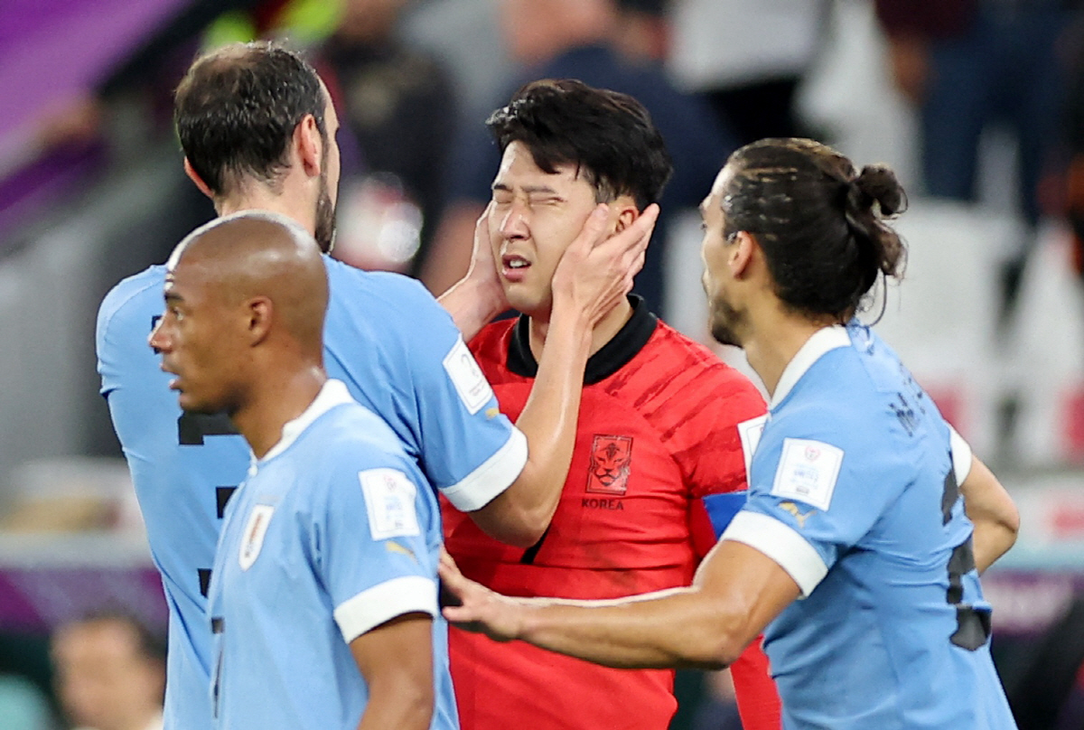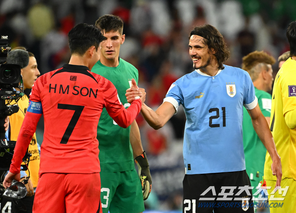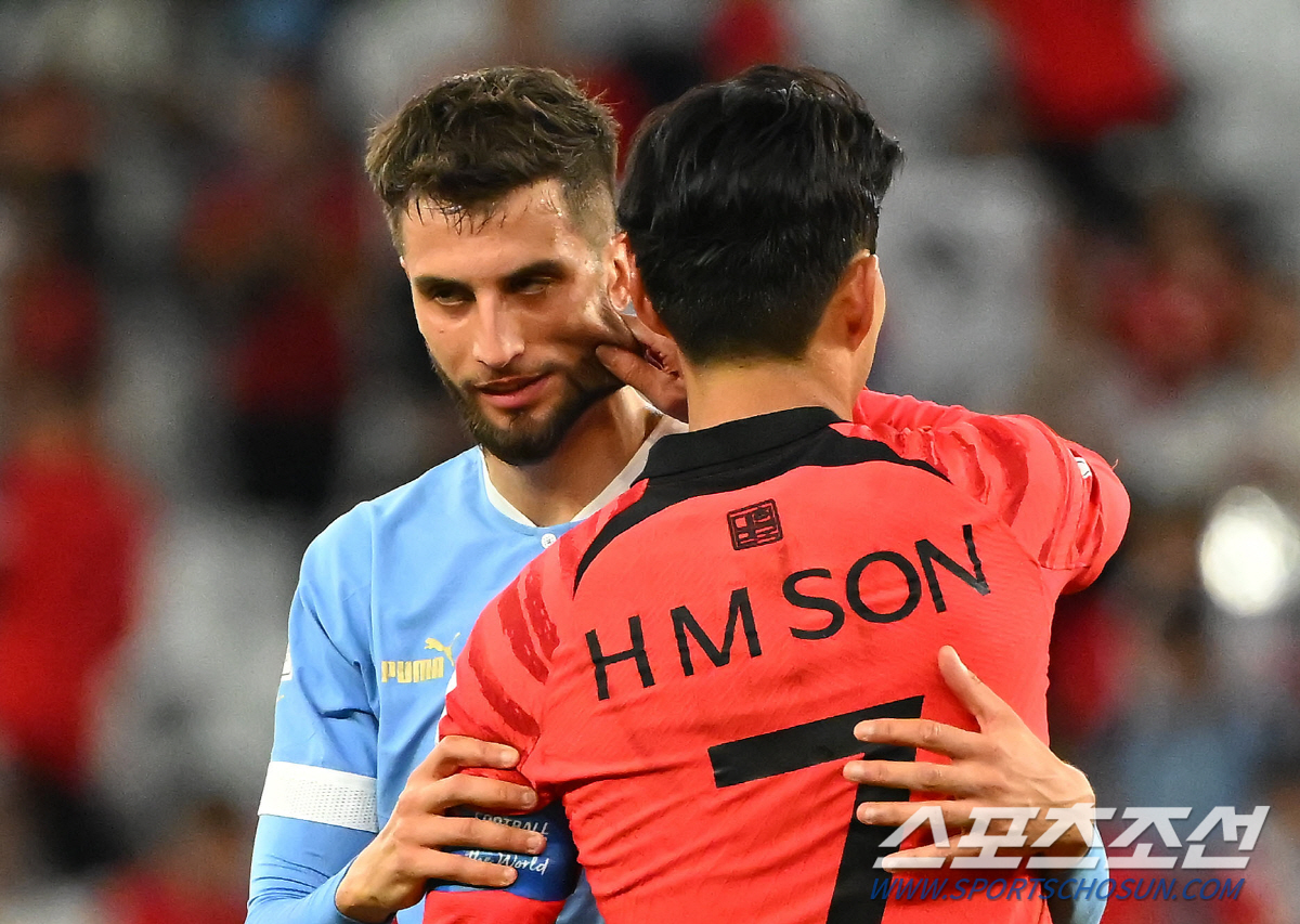 손흥민은 이날 경기 후 토트넘 동료인 로드리고 벤탄쿠르와 서로를 격려하며 진한 포옹을 나눴다. 볼도 꼬집으며 '절친'의 면모를 과시했다. 베테랑인 에딘손 카바니는 엄지를 세웠다. 우루과이의 캡틴 디에고 고딘도 손흥민의 부상을 걱정하며 얼굴을 어루만진 후 포옹했다. 다윈 누녜스도 지나치지 않았다.