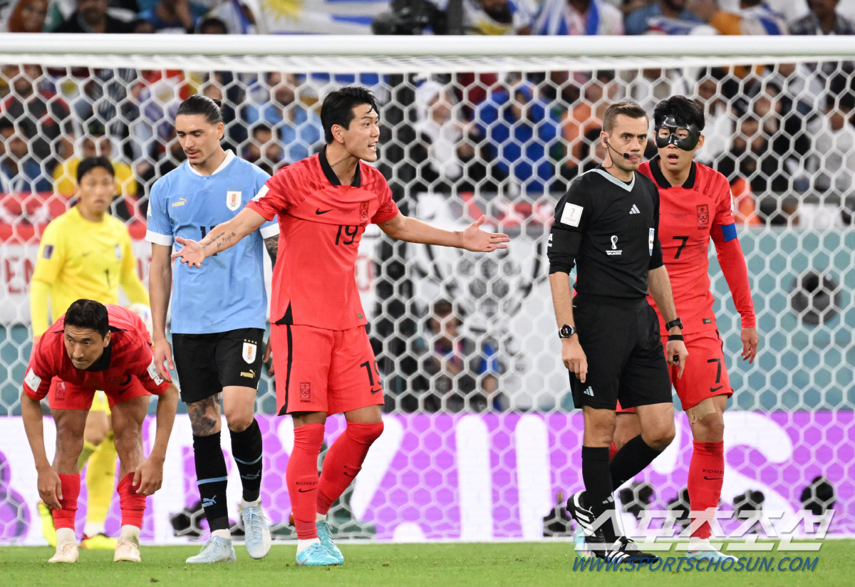 24일 카타르 알라이얀 에듀케이션 시티 스타디움에서 대한민국과 우루과이의 경기가 열렸다. 주심에게 항의하는 김영권. 알라이얀(카타르)=송정헌 기자songs@sportschosun.com/2022.11.24/