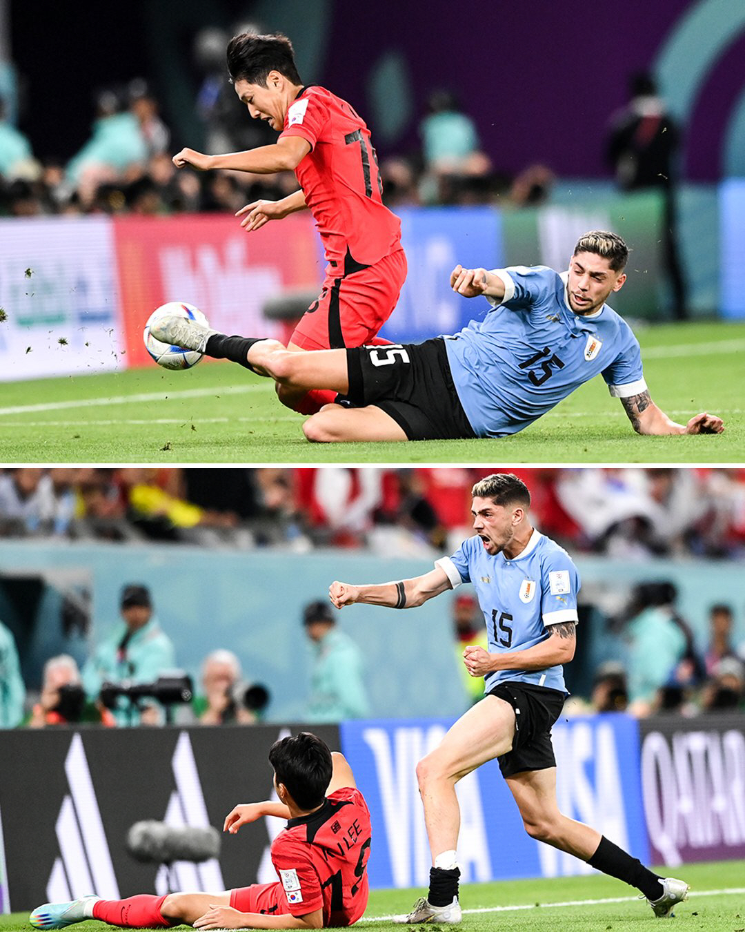 이에 대해 이강인은 덤덤한 반응을 보였다. 경기가 끝난 뒤 이강인은 "경기 중에는 어떤 일이든 일어날 수 있다. 별로 신경 쓰지 않는다"고 밝혔다. 이어 "우루과이는 정말 좋은 선수들이 있는 팀이었다"고 전했다. 김진회 기자 manu35@sportschosun.com