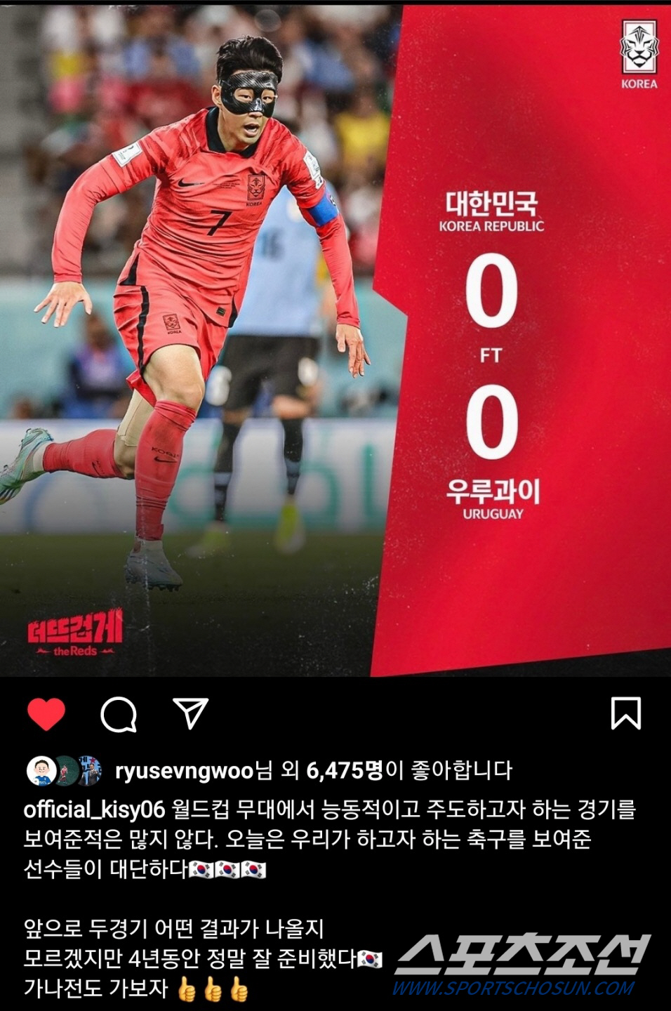 대~한민국이 24일(한국시각) 카타르월드컵 첫 경기에서 강호 우루과이를 상대로 시종일관 대등한 승부 끝에 0대0으로 비기며 승점 1점을 꿰찼다.