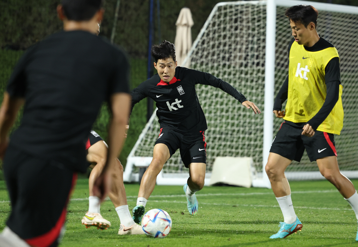 이강인의 투지는 철철 넘쳤다. 월드컵 첫 무대는 그에게도 동기부여가 된 듯 했다. 경기 체력을 유지하기 위한 스프린트 훈련에선 맨앞에서 '형'들을 이끌었다. 6대6 미니게임에서도 차원이 다른 드리블과 개인기를 앞세워 경기를 리드했다. 볼을 다루는 감각은 역시 으뜸이었다.