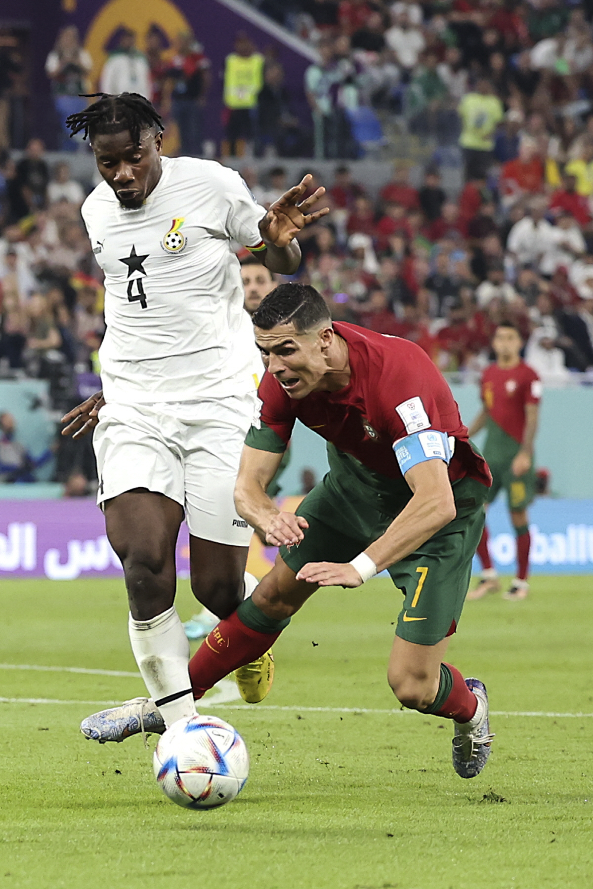 가나는 포르투갈전에서 생각보다 플레이를 잘했다. 전반 수비적인 5-3-2 포메이션으로 포르투갈의 공격을 잘 막았다. 수비시 일반적인 형태인 5-4-1이 아닌 5-3-2 형태를 유지한 게 눈에 띄었다. 이 경우, '3'의 좌우 미드필더들이 측면 수비를 커버해줘야 하는데 모하메드 쿠두스와 토마스 파티가 이 역할을 잘해줬다. 8명을 후방에 포진시킨 가나 수비가 세계적인 공격수가 즐비한 포르투갈을 잘 막아냈다. 대신 공격적인 부분은 포기했다. 어쩌다 역습에 나서도 숫자가 부족했다. '투톱' 이냐키 윌리엄스와 안드레 아예우 둘만으로는 찬스를 만들 수 없었다.
