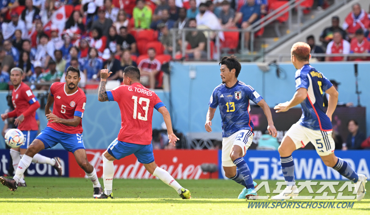 경기 시작을 알리는 휘슬이 울렸다. 일본이 경기 초반부터 적극적으로 공격에 나섰다. 볼 점유율 자체가 높았다. 중원 싸움에서 전혀 밀리지 않았다. 다만, 공격진 호흡이 완벽하지 않았다. 특히 우에다와 소마는 월드컵 데뷔전이었다. 패스 연결이 매끄럽지 않았다. 코스타리카는 호시탐탐 역습을 노렸다. 하지만 일본의 수비벽을 뚫지 못했다. 전반 30분이 흐르는 동안 두 팀은 슈팅을 한 차례씩 주고 받는 데 그쳤다. 유효 슈팅은 없었다. 일본과 코스타리카는 전반 추가 시간까지 포함해 46분 동안 0-0으로 막을 내렸다.