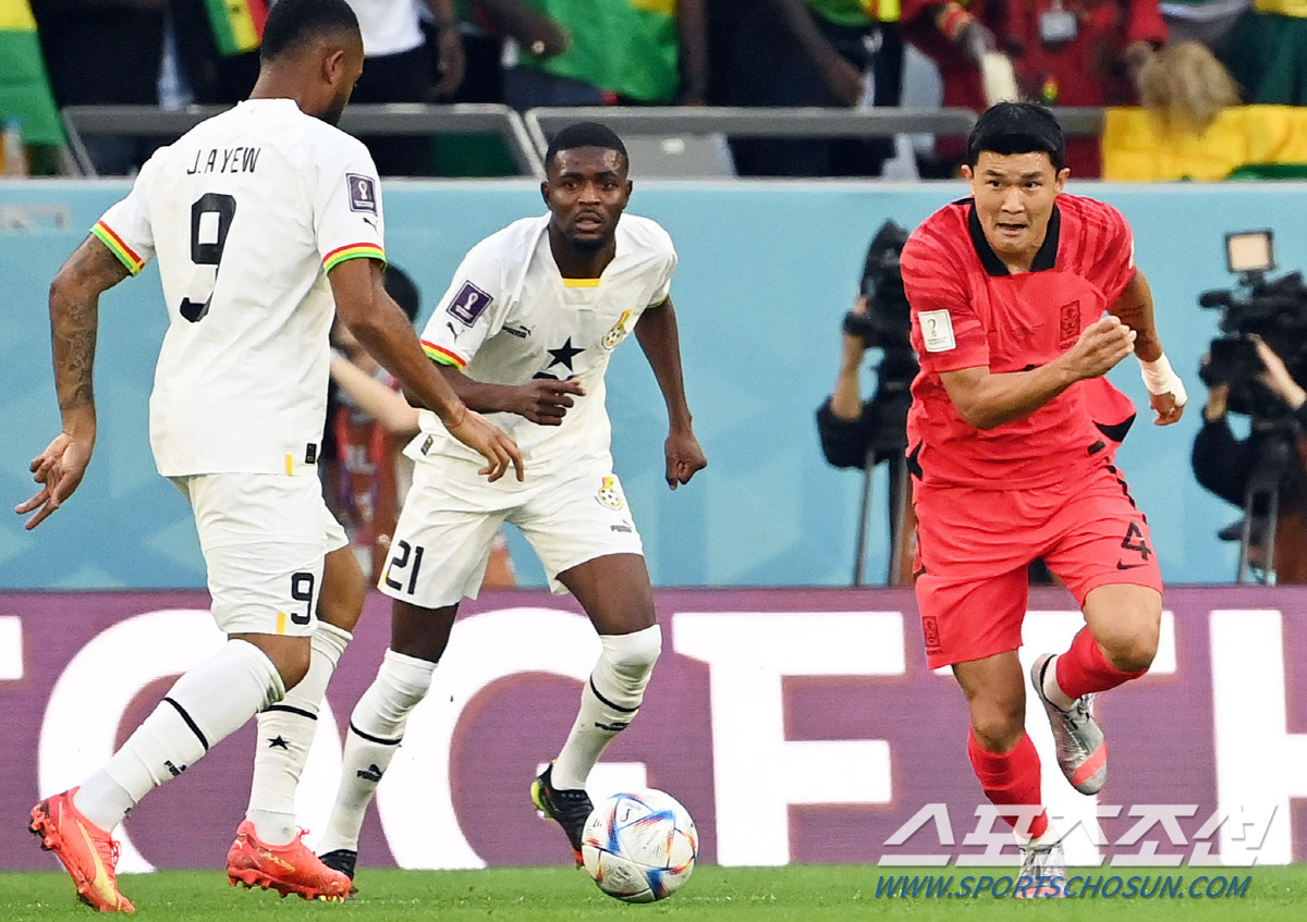 기회 뒤 위기였다. 축구는 골로 말할 뿐이다. 전반 24분 가나의 세트피스 한 방에 분위기가 바뀌었다. 조던 아예우가 프리킥을 김민재가 헤더로 걷어냈지만 경합상황에서 안드레 아예우의 팔을 맞고 바로 앞에 떨어졌다. 이를 살리수가 왼발로 밀어넣었다. 골이었다. VAR(비디오판독)에도 골은 번복되지 않았다.