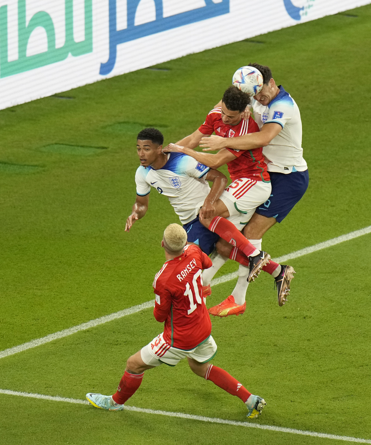 경기 시작 직후부터 잉글랜드가 계속 공세를 퍼부었다. 래시포드와 포든이 전반 초반부터 슛을 가동했다. 라이스로부터 시작된 공격 작업이 좌우 측면과 중앙에서 다채롭고 활발하게 전개됐다. 수비수 매과이어도 전반 19분 공격에 가담해 헤더 슛을 날렸다. 그러나 좀처럼 웨일스의 골문은 열리지 않았다.