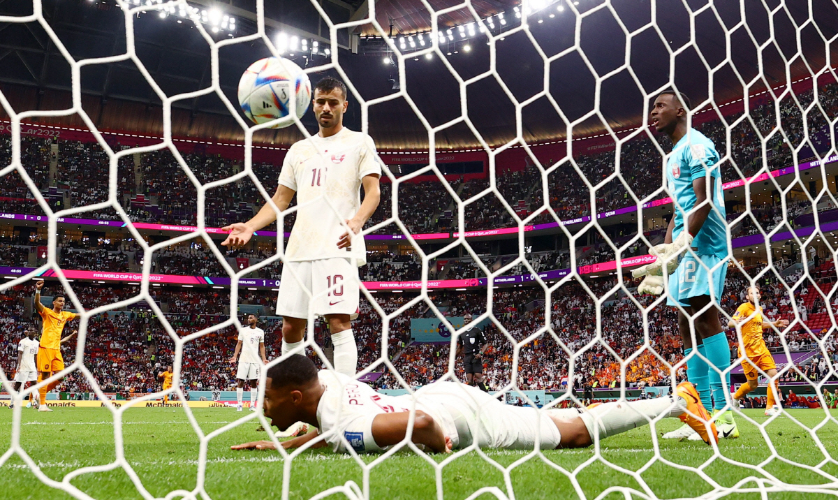 카타르는 전반 26분만에 선제 실점했다. '박지성의 에인트호번 후배'인 코디 각포에게 중거리 골을 허용했다. 각포는 네덜란드 선수로는 역대 4번째로 월드컵에서 3경기 연속골을 넣었다.