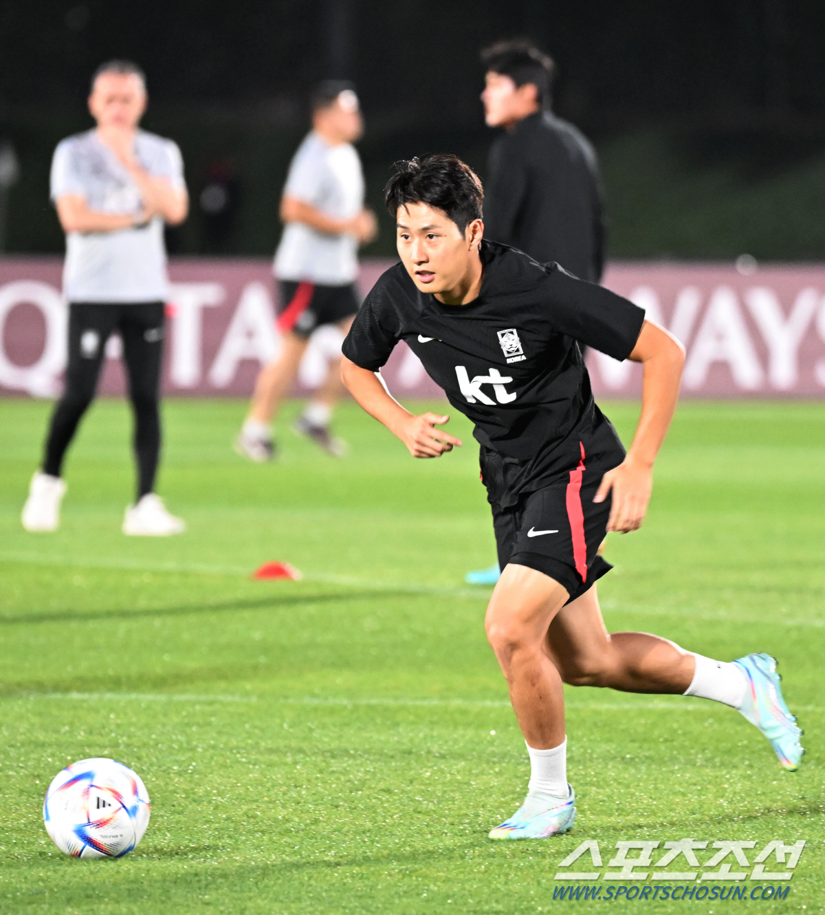 이강인은 '비주전' 조에서 훈련을 시작했다. 몸놀림은 경쾌했고, 볼을 다루는 감각 역시 탁월했다. 가나전에서 후반 12분 투입된 그는 40여분간 훈련한 후 그라운드를 먼저 빠져나갔다. 포르투갈전에 대비한 컨디션 조절 차원이다.