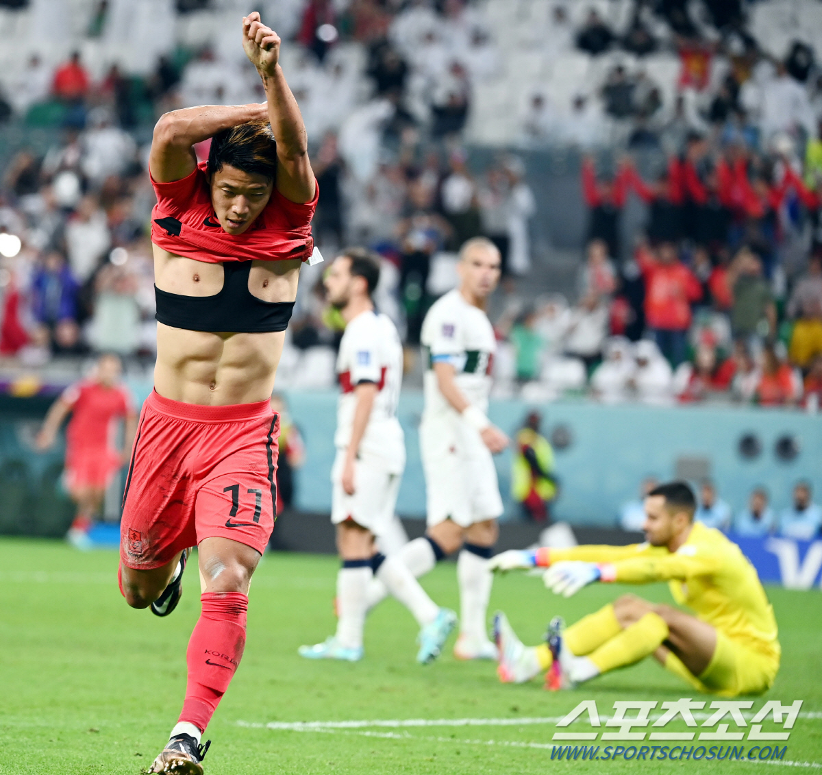 결승골을 넣은 황희찬은 드라마를 썼다. 이번 대회에서 햄스트링 부상으로 1, 2차전에 결장했다. 3차전 출전도 쉽지 않았다. 하지만 그는 극적으로 경기장을 밟았고, 16강을 결정짓는 결승골까지 넣었다. 황희찬은 "경기에 투입되기 전, 흥민이형이 오늘 네가 해줘야 한다고 이야기하셨다. 교체로 들어갈때부터 할 수 있다는 이야기를 동료들이 해줘서 듬직했다. 1, 2차전 못뛰어서 힘이 되고 싶었다. 조금이나마 도움이 되서 기쁘다"며 "두 경기에서 못나오는 동안 동료들이 열심히 뛰는 모습을 보고 눈물이 많이 나왔다. 두번째 경기 끝나고 이제 어떻게 되도 상관없다, 뭐라도 하자고 생각하고 그런 각오로 준비했다. 완벽하지는 않지만 부상에서 회복했고, 경기에 나왔다. 너무 감동이었다. 많은 국민이 응원해주는걸 알기에 힘이 났다. 검사 결과가 월드컵 기간 보다 더 길었던 것은 사실이다. 의무팀과 동료들이 믿음을 줬고, 그래서 그 기간보다 빠르게 회복해서 돌아오고 좋은 결과 만들어내서 기쁘다"고 했다.