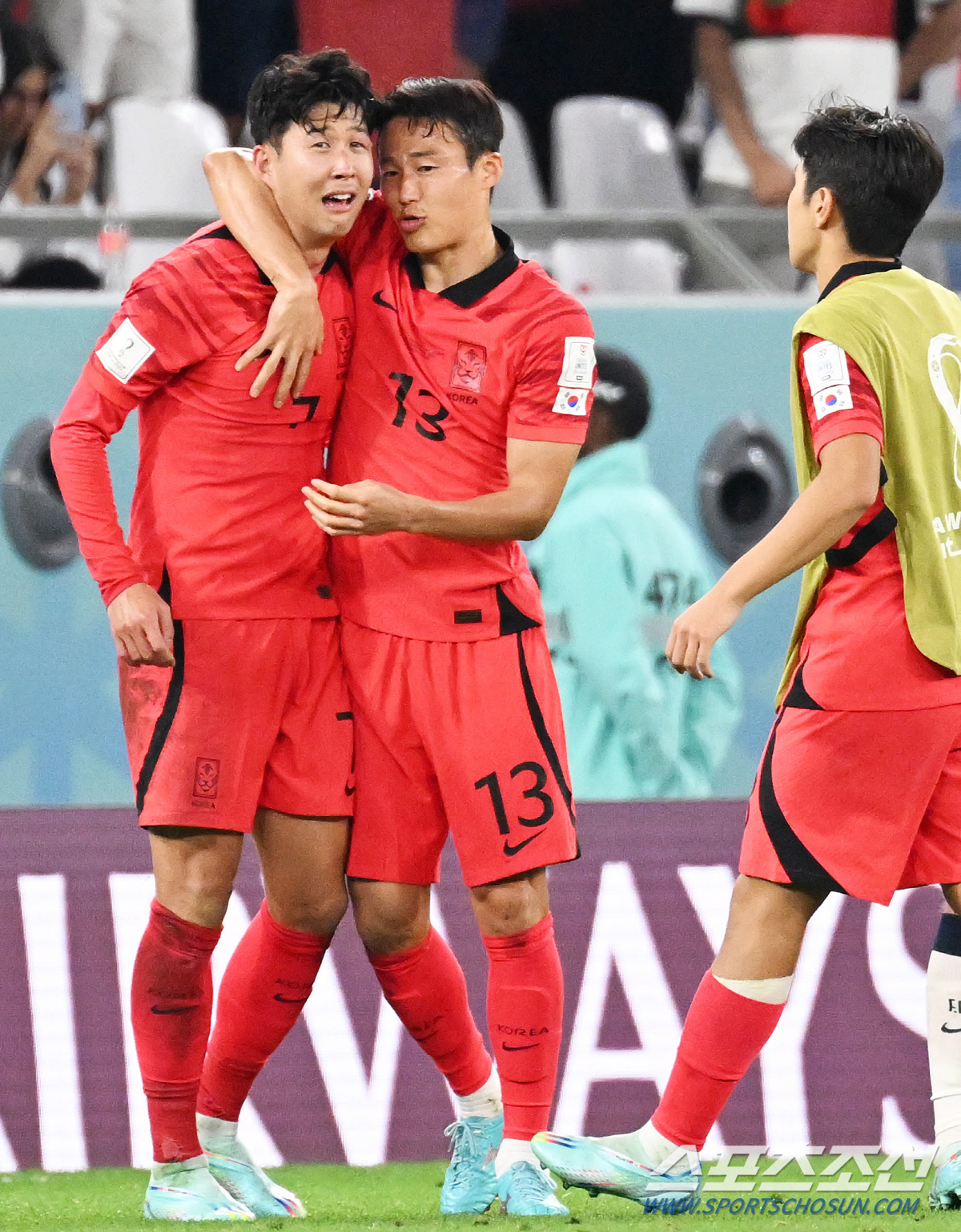 대한민국 축구대표팀 손흥민이 2일 오후(현지시간) 카타르 알라이얀 에듀케이션 시티 스타디움에서 열린 2022 카타르 월드컵 조별리그 H조 대한민국과 포르투갈의 경기에서 포르투갈에 2대1로 승리한 뒤 16강 진출이 확정되자 눈물을 흘리고 있다. 알라이얀(카타르)=송정헌 기자songs@sportschosun.com/2022.12.03/