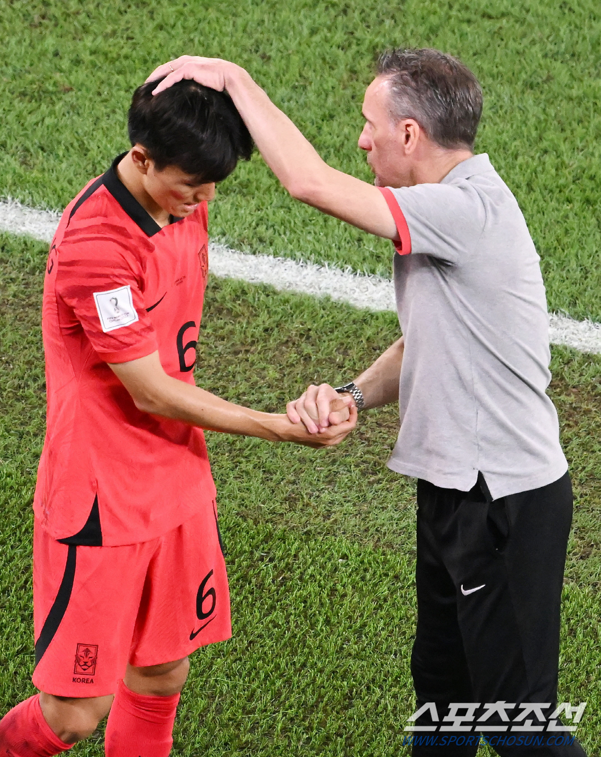 황인범(올림피아코스)도 뜨거운 눈물을 쏟아냈다. 그는 벤투호에서 가장 많이 뛴 거리를 자랑할 정도로 최고의 투지를 불태웠다. 또 세계적인 미드필더들과 어깨를 나란히 할 정도로 가치를 인정받았다. 황인범은 브라질전 후 "지난 4년간 많은 노력을 했다. 외부적으로 흔들리는 일들과 말들이 많았지만, 내부적으로 잘 뭉치고 서로를 믿고 해왔던 결과를 지난 포르투갈전 뿐만 아니라 조별리그 세 경기에서 보상받았다고 생각해 전혀 후회는 남지 않는다"고 고백했다. 그는 기량으로 '벤투호의 황태자'라는 것을 입증했다. "(벤투 감독님은)너무 감사한 분이다. 외부에서 말들이 많았다. 무슨 인맥, 무슨 관계 혹은 왜 쓰냐라는 말들이 많았다. 제가 감독님이었다면 흔들렸을 수 있었을텐데 믿어주셨다. 감사한 부분이 많다." 오열하며 발걸음을 옮기는 황인범의 뒷모습이 아름다웠다.
