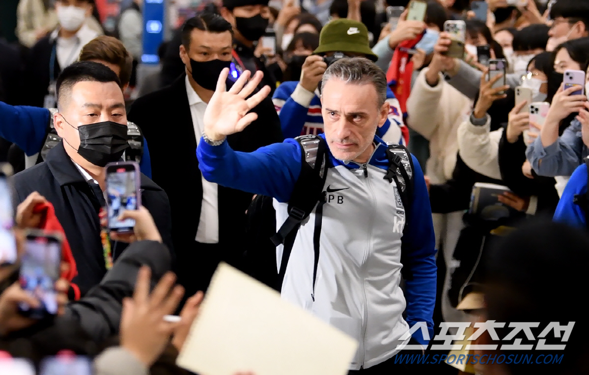 [인천공항=스포츠조선 윤진만·김가을 기자] 7일 오후 5시40분. 인천국제공항 입국 게이트 문이 열렸다. "와아~~~". 공항을 떠들썩하게 만들 정도로 데시벨 높은 환호성 쏟아졌다. 공항 측 추산 입국 게이트 앞에 운집한 1000여명의 팬들은 줄지어 나오는 축구대표팀 선수들의 이름을 목청껏 외쳤다.