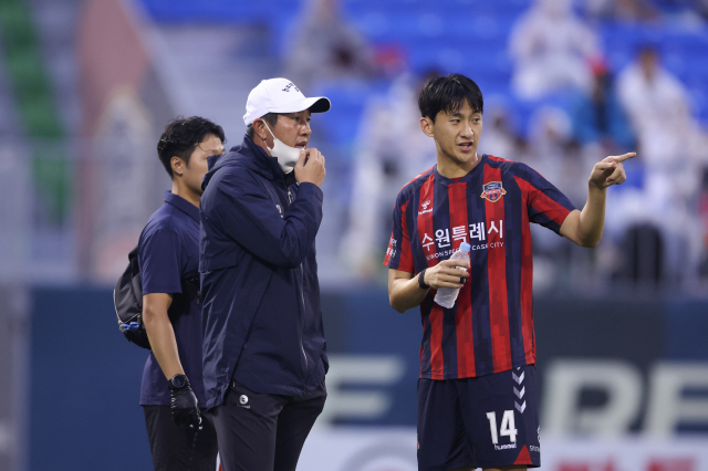 김도균 감독(왼쪽)과 김건웅. 사진제공=프로축구연맹