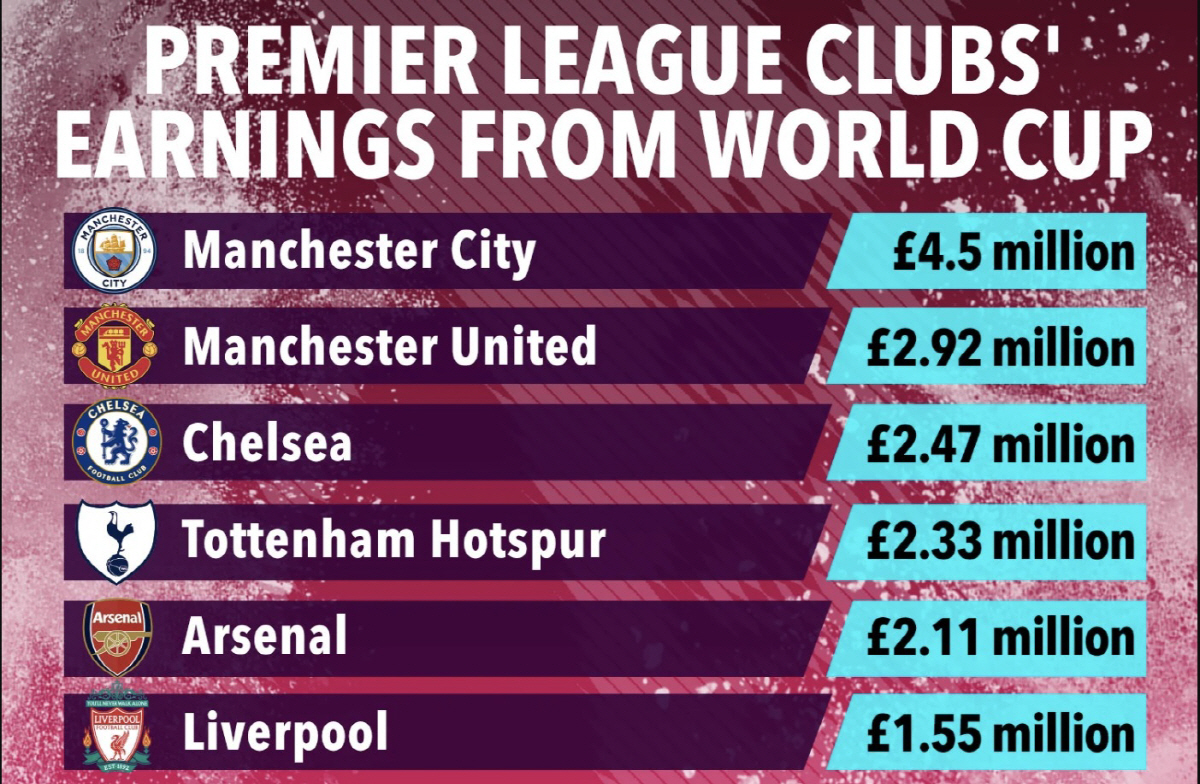 K리그에서는 전북 현대가 월드컵으로 가장 많은 돈을 벌어들였다. 송범근 김진수 김문환 송민규 백승호 조규성, 6명의 선수를 월드컵으로 보낸 전북은 20억원에 가까운 수익을 벌어들인 것으로 전해졌다.