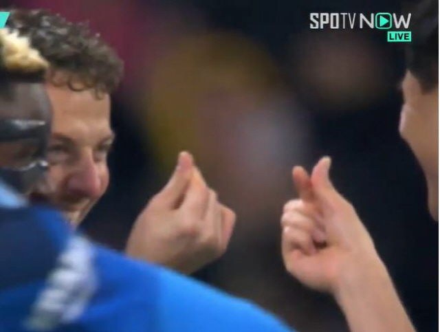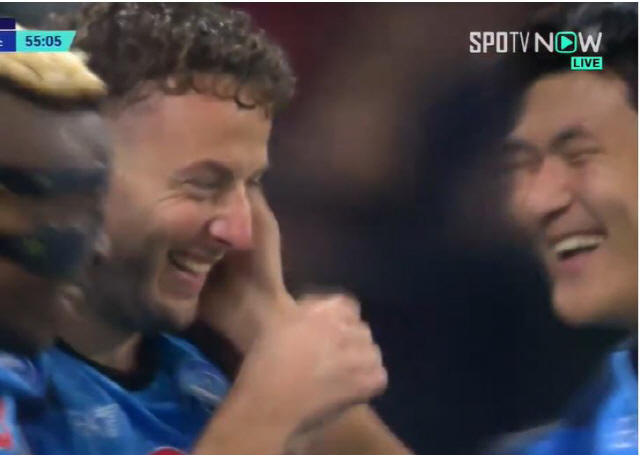 특히 이날 후반 10분엔 팬들의 시선을 사로잡는 '극강 센터백' 듀오의 훈훈한 애정 행각(?)도 펼쳐졌다. 코너킥에서 크바라츠헬리아의 날선 크로스를 박스안에서 라흐마니가 받아넣으며 나폴리가 3-1로 달아났다. 누구보다 기뻐한 건 '수비 파트너'이자 '절친' 김민재. 동료들과 포옹하며 기쁨을 나누던 라흐마니가 김민재를 향해 짜릿한 손하트를 건넸다. 엄지와 검지를 교차하는 하트, 한국산 'K-손가락 하트'가 나폴리 그라운드에서 작렬했다. 김민재가 K-손하트로 화답하며 함박웃음을 지어보였다.