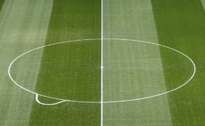 도르트문트 홈구장 센터서클에 그려진 '고환암 경고 사인'. 데일리 메일 기사캡쳐