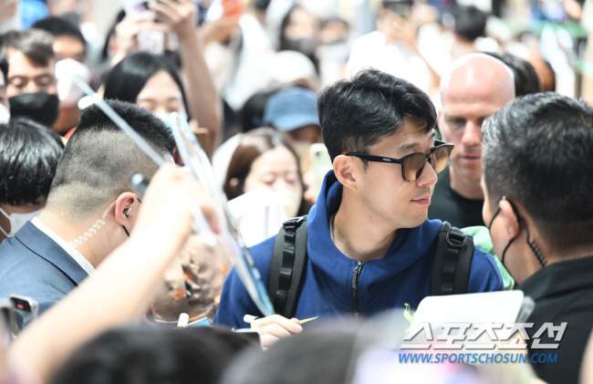 팬들에게 일일이 사인을 해주고 있는 손흥민. 17일 토트넘 선수들이 인천공항을 통해 출국했다. 출국장을 찾은 팬들에게 인사하고 있는 손흥민. 인천공항=송정헌 기자songs@sportschosun.com/2022.07.17/