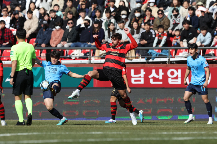 포항은 7일 현재, K리그1(1부) 선두를 질주하고 있다. 2경기를 치렀는데 FC서울, 울산 현대와 나란히 2승(승점 6)을 기록 중이지만, 5골을 터뜨려 승점-다득점 우선원칙에 따라 선두다.