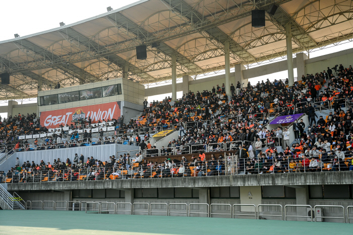 하지만 낙담만 할 필요는 없을 것 같다. 우울한 그라운드 안과는 달리 밖에서는 든든한 '강원도의 힘'이 있기 때문이다. 의기소침한 선수단에 '중꺾마' 정신을 일깨워 줄 수 있는 강원 팬들의 열기다.
