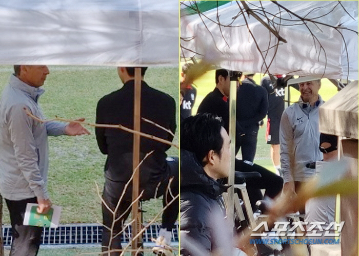 손흥민 등 선수들이 사이클을 타고 휴식을 취하는 장소와 취재진과 거리가 멀어 정확히 어떤 이야기를 주고 받는지는 알 수 없지만, 클린스만 감독이 손을 이용해 열정적으로 말하는 모습, 해맑게 웃는 모습은 확인할 수 있었다.