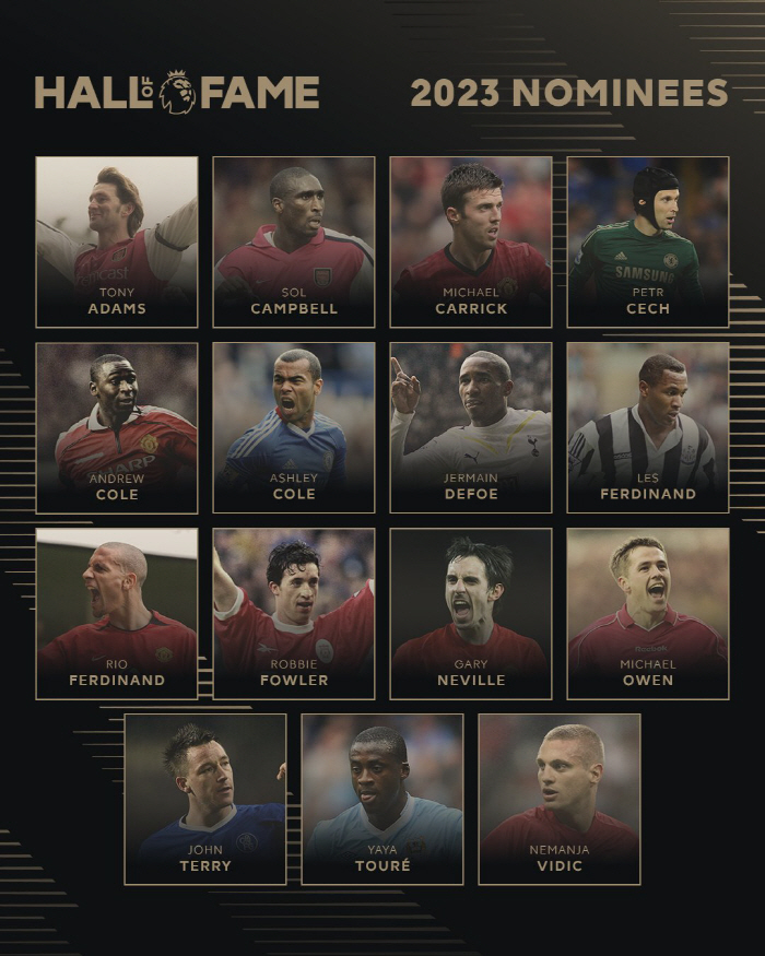 [스포츠조선 윤진만 기자]잉글랜드 프리미어리그(EPL) 사무국이 두 명의 새 얼굴이 포함된 2023년 EPL 명예의 전당 후보를 발표했다.