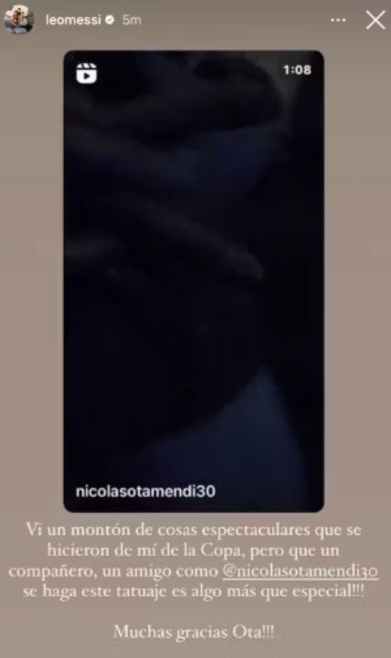 영국 기브미스포츠는 '축구 관련 문신으로선 정말 아름답다. 메시의 허락을 받았다면 정말 대단한 문신'이라고 평했다. 오타멘티의 타투 공개 직후 메시가 직접 자신의 SNS 계정을 통해 즉각 반응했다. "나나 우승컵을 소재로 만든 놀라운 물건들을 많이 봐왔지만 팀 동료인 오타멘디 같은 친구가 이런 문신을 하는 건 특별함 그 이상이다. 오타, 고마워!'며 마음을 전했다. 전영지 기자 sky4us@sportschosun.com