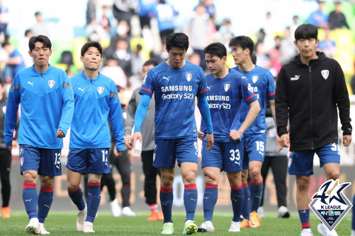 올 시즌도 별반 다르지 않다. 예고된 재앙이었다. 개막 전 '막내 에이스' 오현규를 스코틀랜드 리그 셀틱으로 내보냈다. 오현규는 이적료 300만 유로를 남겼다. 하지만 그 돈은 선순환으로 이어지지 않았다. 팬들이 기대하는 수준의 영입은 이뤄지지 않았다. 결국 수원은 개막전부터 '승격팀' 광주FC에 0대1로 발목을 잡혔다. 개막 7경기 연속 무승(2무 5패)이란 역대급 부진에 빠졌다.