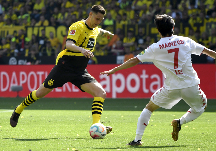 마인츠는 후반 21분 여유롭게 첫번째 교체카드를 꺼냈다. 이재성을 빼고 마르쿠스 잉바르트센을 투입했다. 마인츠는 이재성을 뺀 뒤 귀신같이 골을 허용했다. 레이나의 패스를 받은 라파엘 게레이로가 침착한 왼발로 골문을 열었다.