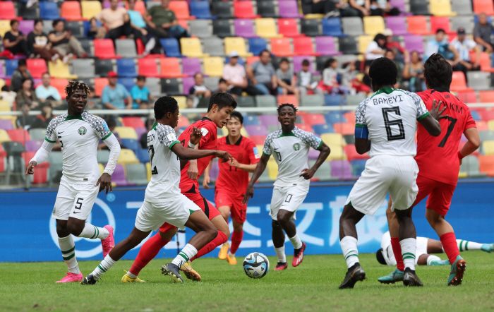 후반 경기 양상도 전반과 비슷했다. 5분 바메이가 위협적인 중거리로 후반 첫 슈팅을 쐈다. 김준홍이 정면으로 날아온 공을 침착하게 막았다. 웅크리고 있던 한국은 14분 날카로운 공격으로 나이지리아를 위협했다. 이영준이 아크정면에서 왼발 터닝슛을 시도했으나, 골대 위로 살짝 떴다. 이전 장면에 영리하게 공을 흘려주는 김용학의 센스가 돋보였다.