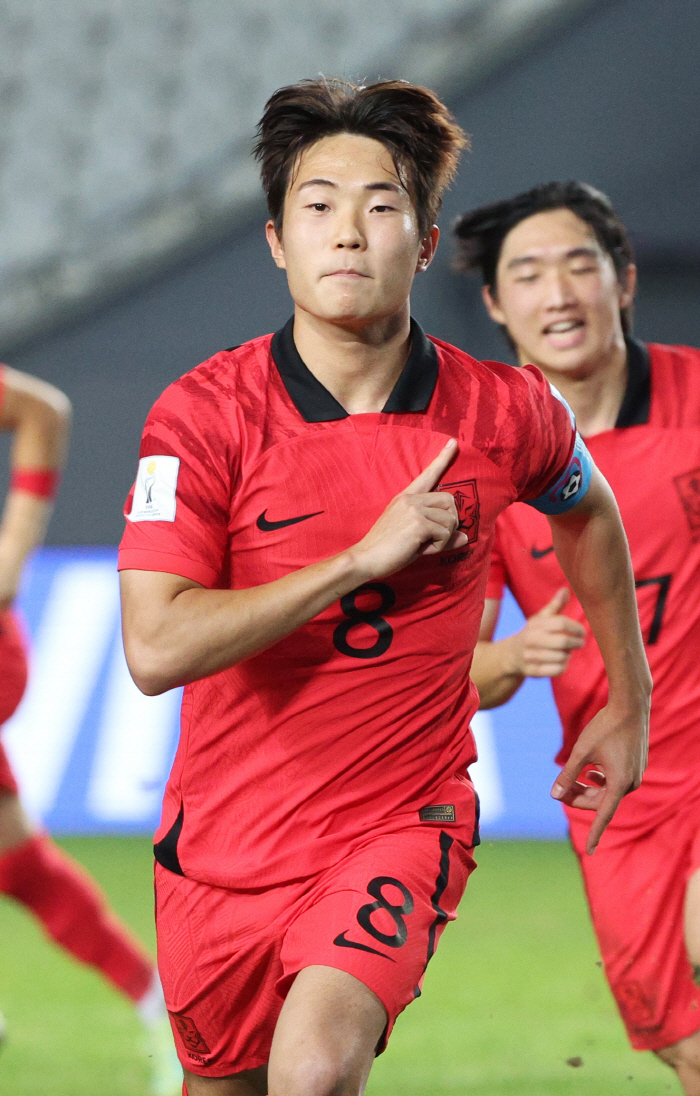 18분 한국이 기회를 잡았다. 배준호가 페널티 박스 안에서 자노티에 왼발이 밟혔다. 주심은 경기를 그대로 진행했다. 하지만 VAR(비디오판독)이 움직였다. 주심은 온필드리뷰 후 페널티킥을 선언했다. 이승원이 키커로 나섰다. 깔끔하게 성공시켰다. 이승원은 2골-4도움, 지난 대회 이강인과 같은 공격포인트를 기록했다.