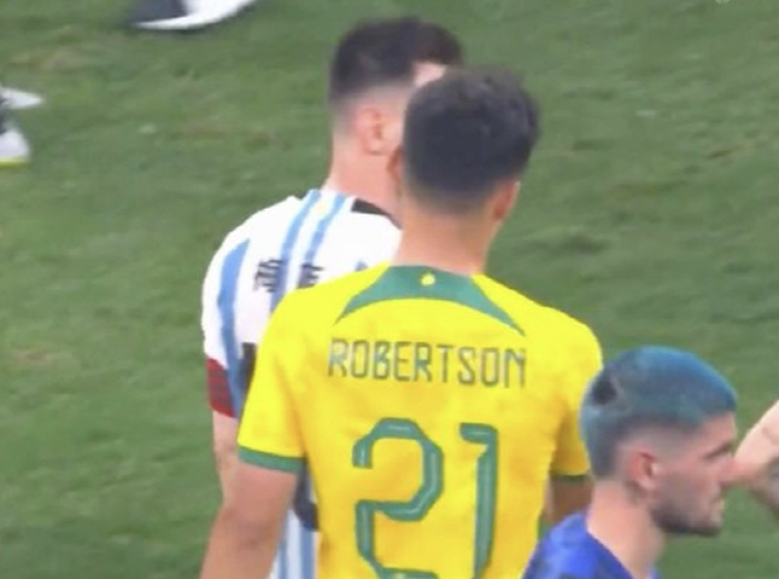 영국 언론 데일리스타는 18일(이하 한국시각) '로버트슨이 리오넬 메시(아르헨티나)와의 친선경기 뒤 유니폼 교환을 원했다. 그는 메시의 유니폼을 잡는 모습이 포착됐다. 로버트슨는 메시를 계속 쫓아갔지만, 결국 포기했다'고 보도했다.