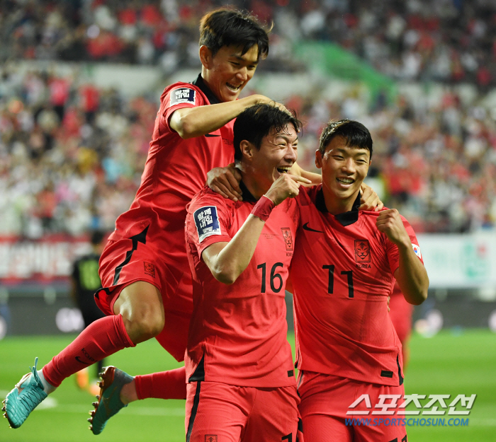 대한민국과 엘살바도르의 A매치 평가전이 20일 대전월드컵경기장에서 열렸다. 황의조가 선취골을 넣은 뒤 환호하고 있다. 대전=박재만 기자pjm@sportschosun.com/2023.06.20/