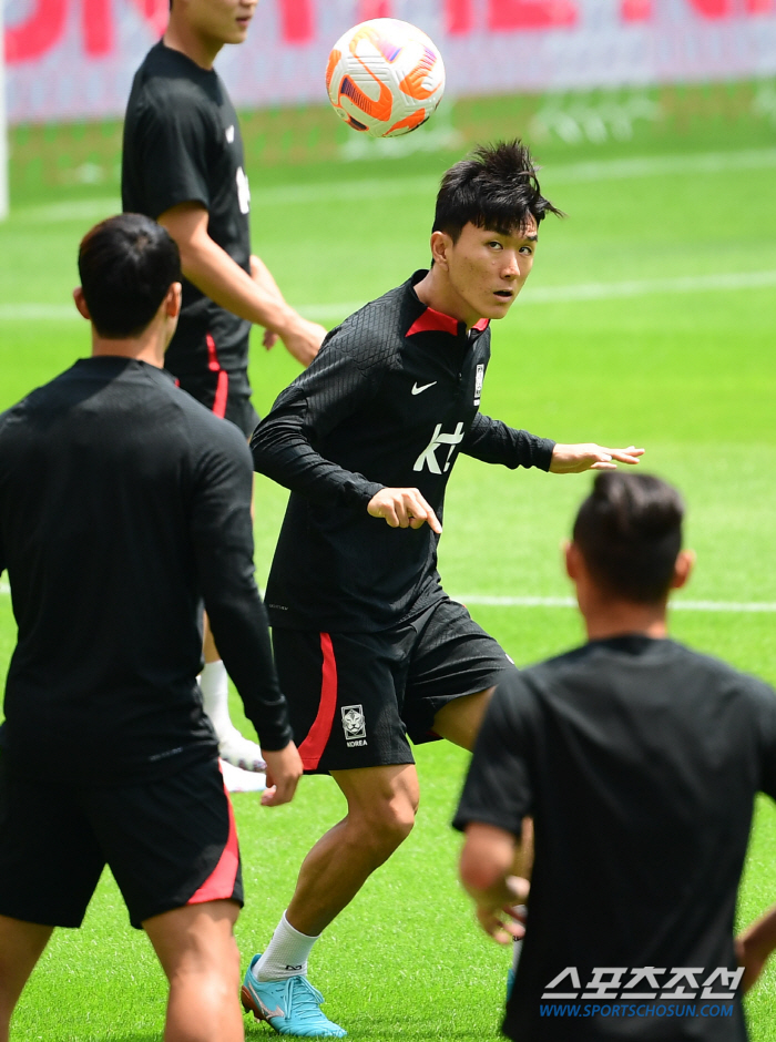 클린스만 감독이 이끄는 축구국가대표팀 선수들이 15일 부산아시아드경기장에서 소집훈련을 이어갔다. 황인범에 패스 훈련을 하고 있다. 한국과 페루는 오는 16일 부산아시아드주경기장에서 A매치를 갖는다. 부산=최문영 기자deer@sportschosun.com /2023.06.15/