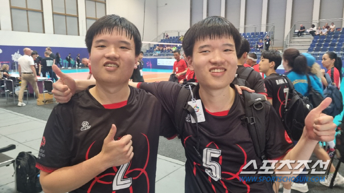 [베를린(독일)=스포츠조선 윤진만 기자]통합배구 선수단의 쌍둥이 윤달상, 달성 형제가 가장 먼저 떠올린 얼굴은 아버지였다. 형제는 19일(한국시각) 독일 베를린의 메세 베를린에서 진행 중인 발달장애인들의 스포츠 축제 '2023년 스페셜올림픽 세계 하계대회'에서 '메달을 따면 누구에게 가장 먼저 보여주고 싶은가'란 기자의 질문에 "아버지"라고 답했다.