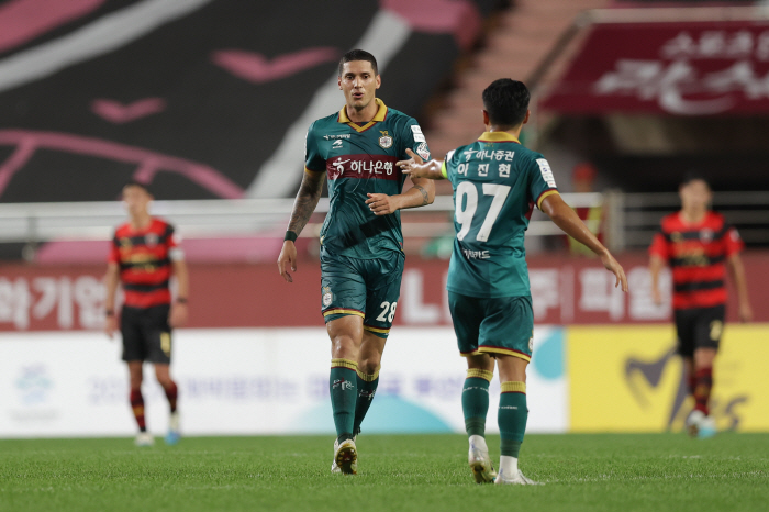 포항스틸야드/ K리그1/ 포항스틸러스 vs 대전하나시티즌/ 대전 티아고 득점/ 골 세레머니/ 사진 김정수