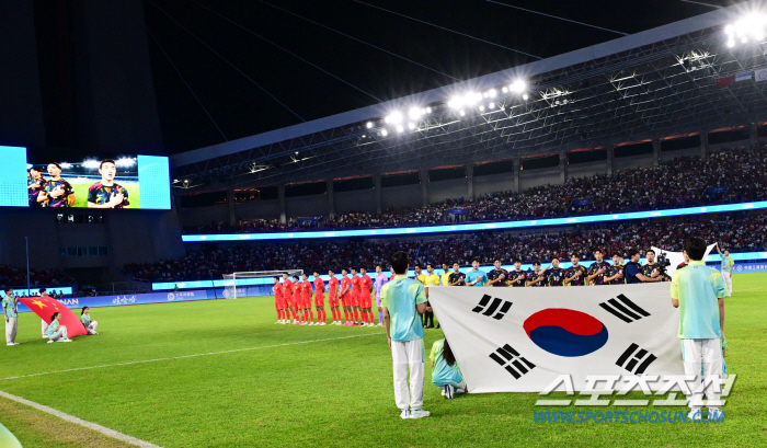 한국은 이강인(파리생제르맹) 정우영(슈투트가르트) 설영우(울산) 등 주전급 자원을 벤치에 앉히고도 중국을 압도하고 있다. 무엇보다 5만 관중의 일방적인 응원에도 주눅들지 않고 있다. 항저우(중국)=윤진만 기자 yoonjinman@sportschosun.com