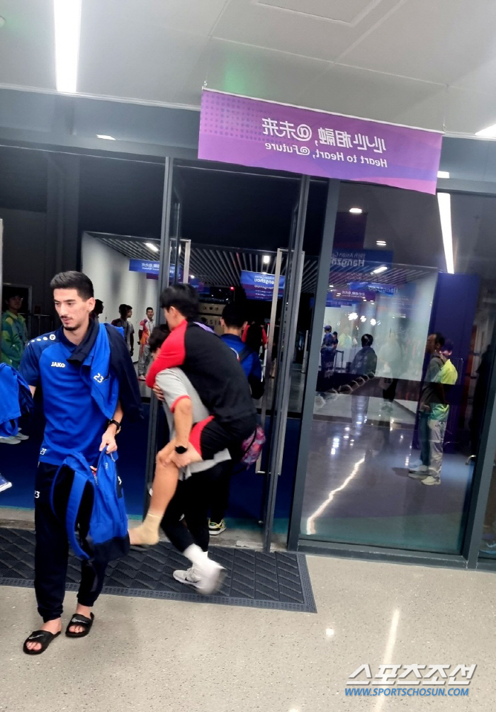 '세리머니 파트너' 정우영(슈투트가르트)에 따르면, 엄원상은 발목쪽 염좌를 호소했다. 황 감독의 말마따나 병원에서 부상 부위를 살펴야하지만, 현 상태로는 사흘 뒤인 7일에 열리는 일본과 결승전 출전을 장담할 수 없다. 엄원상은 경기 후 스태프에게 업혀서 버스에 올라탔다.
