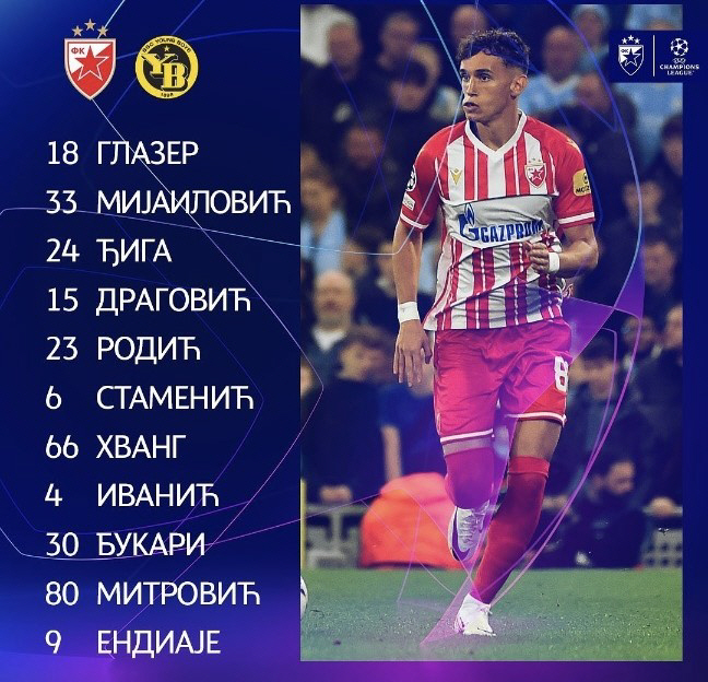 즈베즈다는 4-2-3-1 포메이션으로 나섰다. 최전방에 은디아예, 바로 뒷선에 미트로비치, 이바니치, 부카리, 수비형 미드필더로 황인범, 스타메니치, 포백에 로디치, 드라고비치, 지가, 미하일로비치, 골키퍼 글레이저를 세웠다. 한국 국가대표 미드필더 황인범은 지난 맨시티와의 1차전처럼 선발 출전했다. 중원에서 공수 연결고리 역할을 했다. 황인범은 올해 여름 이적시장을 통해 올림피아코스(그리스)에서 세르비아의 명문 즈베즈다로 이적했다. 4년 계약한 황인범의 이적료는 공개되지 않았지만, 현지 언론을 종합해보면, 550만유로, 약 78억원으로 추정된다. 황인범은 빅리그가 아닌, 동유럽의 명가 즈베즈다에서 새로운 축구인생을 이어갔다. 전 소속팀 올림피아코스가 황인범과 분쟁이 장기화하는데 부담을 느낀 터라 평소 좋은 관계를 유지하던 팀인 즈베즈다로 이적을 허락했다. 황인범의 이적료는 즈베즈다 구단 사상 최고액이라고 한다.