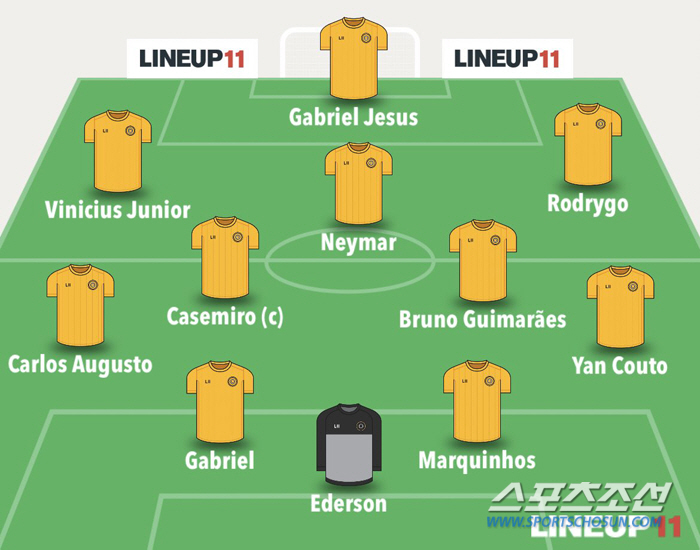 '글로부'의 예상 라인업은 다음과 같다. 제주스, 네이마르(알힐랄), 호드리구, 비니시우스 주니오르(이상 레알마드리드), 카세미루(맨유), 브루노 기마랑이스(뉴캐슬), 쿠토, 마르퀴뇨스(파리생제르맹), 마갈량이스, 아우구스투, 에데르송(맨시티).
