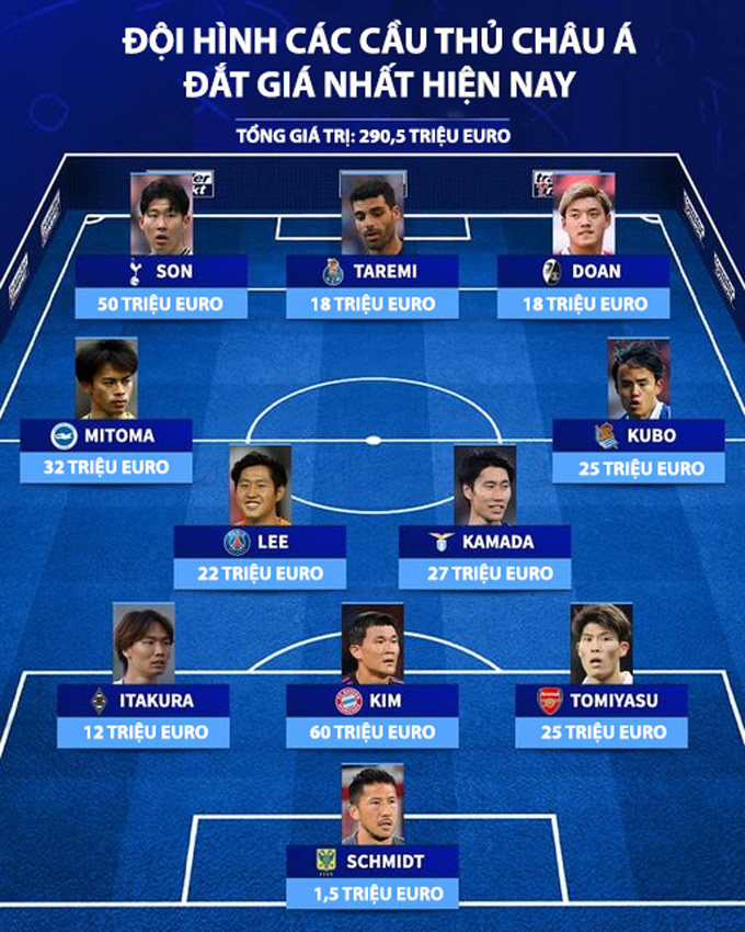 | ◇트랜스퍼마르크트의 아시아 몸값 베스트11. 일본 선수가 6명으로 가장 많다. 출처=트랜스퍼마르크트 |