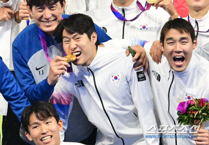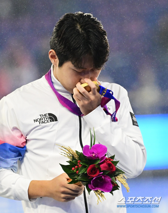 7일 중국 항저우 황룽스포츠센터스타디움에서 대한민국 축구대표팀과 일본의 항저우아시안게임 남자축구 결승전이 열렸다. 축구대표팀이 일본에 2-1 승리하며 금메달을 차지했다. 시상식에서 금메달을 수여 받은 이강인. 항저우(중국)=송정헌 기자songs@sportschosun.com/2023.10.07/