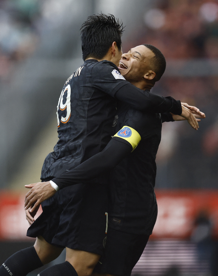 마침내 이강인-음바페 조합이 폭발했다. 28분 이강인이 역습 상황에서 전방을 향해 환상적인 왼발 아웃프런트킥을 찔렀다. 음바페가 잡아내, 수비 한명을 앞에 두고 특유의 니어포스트를 향한 슈팅으로 마무리에 성공했다. 음바페는 이강인을 안아주며 기쁨을 나눴다. 브레스트의 반격도 만만치 않았다. 전반 43분 스티브 무니에가 헤더로 득점에 성공했다.