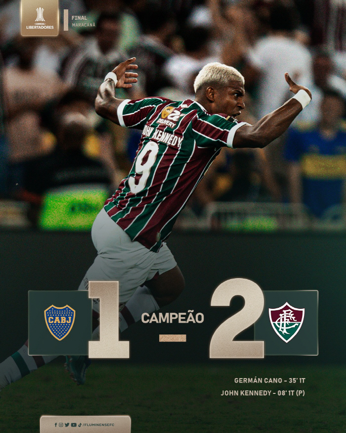 브라질 클럽 플루미넨세는 5일(한국시각) 브라질 리우데자네이루 마라카랑에서 열린 보카주니어스와 2023년 코파리베르타도레스 결승에서 연장 승부 끝에 2대1로 승리하며 창단 이래 첫 우승 쾌거를 이뤘다.