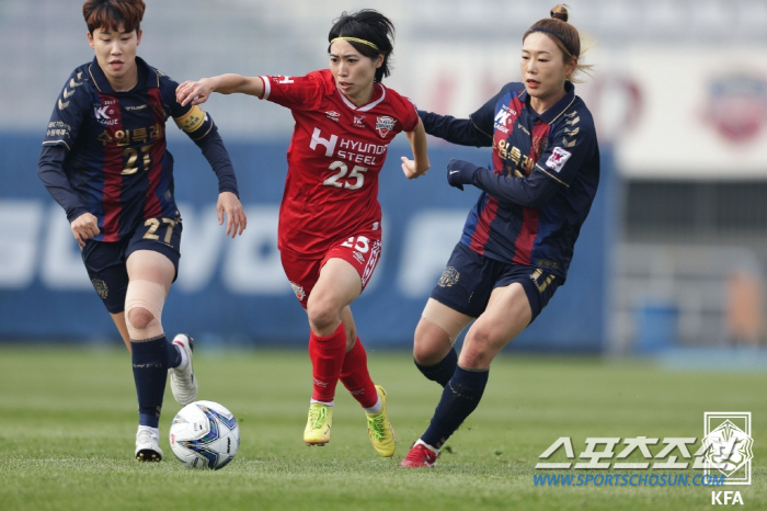 전반 초반부터 인천 현대제철 남궁예지가 빠른 전방쇄도로 골을 향한 의지를 불태웠다. 초반 양팀의 일진일퇴가 이어졌다. 전반 12분 드리블로 박스안을 쇄도하고 들어간 인천 현대제철 캡틴 김혜리의 크로스가 옆그물을 흔들었다. 전반 17분엔 수원FC 위민 '2년 연속 리그 득점왕' 문미라의 슈팅이 굴절되며 불발됐다. 이어진 김윤지의 슈팅은 높이 떴다.