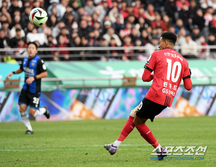 다만 린가드 투입 이후에도 주도권은 인천 쪽에 있었다. 전반 39분 이명주가 박스 안 크로스가 상대 수비를 맞고 튕겨 나오자 곧바로 오른발 중거리 슛을 시도했는데 골문을 벗어났다. 전반 43분 코너킥 상황에서도 오반석의 헤더가 크게 바운드된 것을 최철원이 잡아내며 숨을 돌렸다. 이후 전반은 0-0 상황에서 마무리됐다.