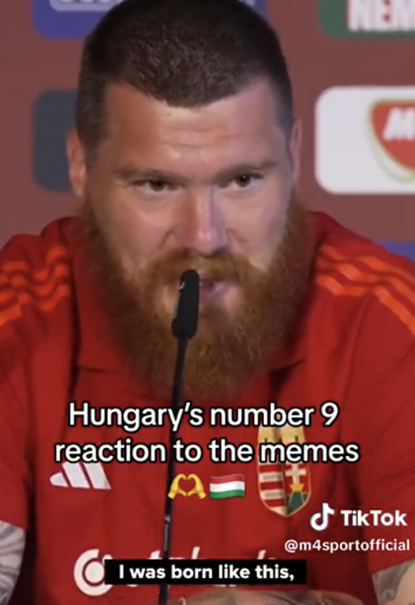 [스포츠조선 윤진만 기자]헝가리 국가대표팀 일원으로 유로2024 대회에 출전 중인 울산 공격수 마틴 아담이 기자회견을 통해 최근 SNS 상에 떠도는 밈(meme)에 대한 자신의 생각을 밝혔다.