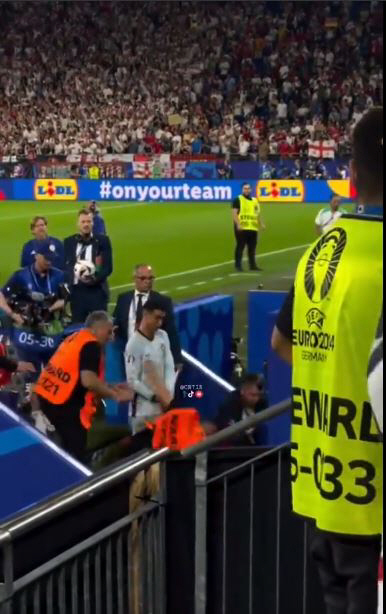 호날두를 향해 뛰어든 팬은 중심을 잃고 제대로 착지도 하지 못하고 쓰러졌다. 안전 요원들이 곧바로 난입한 팬을 막았다. 호날두는 어이없다는 식의 행동을 선보였다. 만약에 호날두가 난입한 팬과 충돌해 부상을 입었다면 포르투갈에는 엄청난 손해였을 것이다.