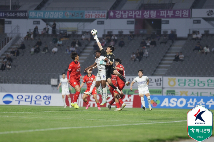 신송훈은 내달 1일 서울이랜드와 20라운드를 통해 5경기 연속 무실점에 도전한다. 역대 K리그2 최다 연속 무실점 기록은 6경기다. 2013년 상주(현 김천), 2017년 성남, 2023년 부산 등 3팀이 보유했다. 충남아산은 이랜드전에서 패하지 않으면 5경기 연속 무패를 기록해 자체 최다 무패 기록을 경신한다. 현재 승점 27점으로, 2위 전남(29점)과 승점 2점차여서 이날 결과에 따라 최대 2위까지 점프할 수 있다. 윤진만 기자 yoonjinman@sportschosun.com