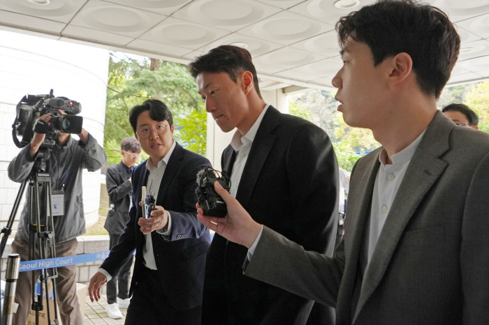 '불법촬영 혐의' 첫 재판 출석하는 황의조 (서울=연합뉴스) 김인철 기자 = 불법 촬영 혐의를 받는 축구선수 황의조가 16일 오전 서울 서초구 서울중앙지방법원에서 열린 성폭력범죄의 처벌 등에 관한 특례법 위반 혐의 관련 1차 공판에 출석하기 위해 법정으로 향하고 있다. 2024.10.16 [공동취재]